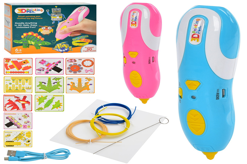 3D ручка D0757B (9шт) 15см,тип філаменту-пластик - PLA(2 кол),USBшнур, карточки, в кор,22-20-6,5см