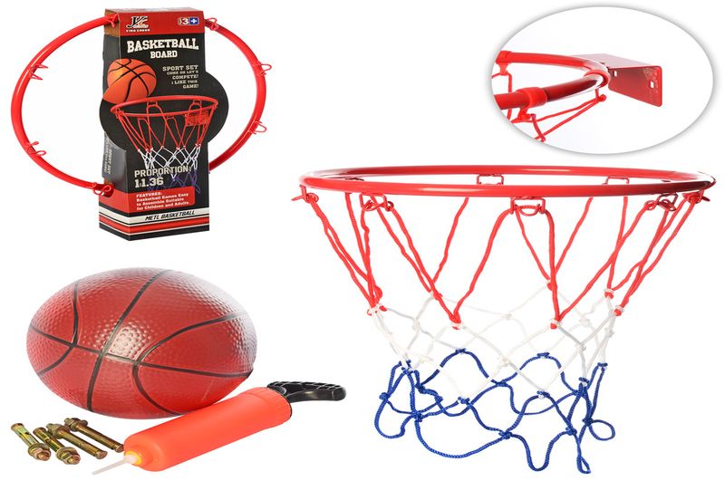 Баскетбольне кільце MR 0166 (12шт) кільце 32см(метал),сітка,м'яч,насос,кріпл,в кор,32-39-7см