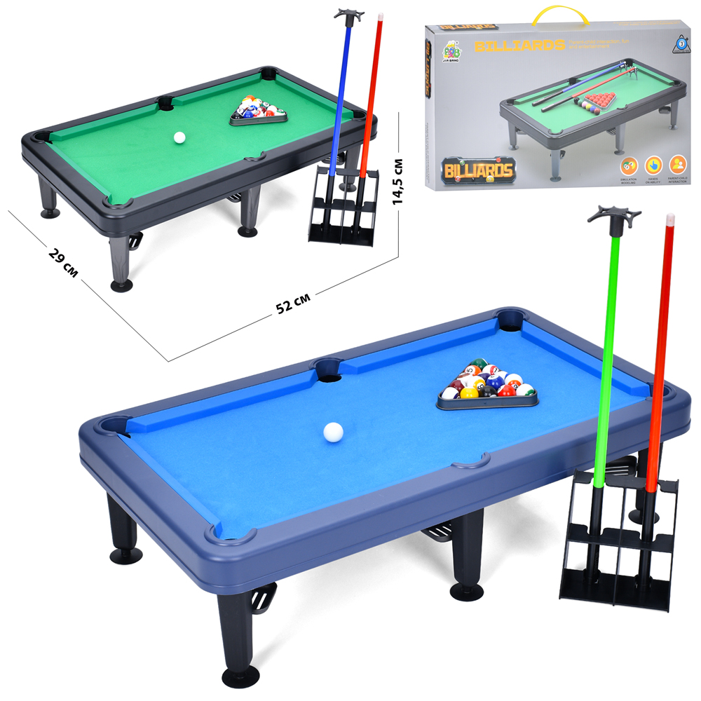 Більярд 788-110Y (24шт) на ніжках, 52-29-14,5см, поле 44-21см, кій 2шт, кулі, 2 кольори, в кор-ці, 5