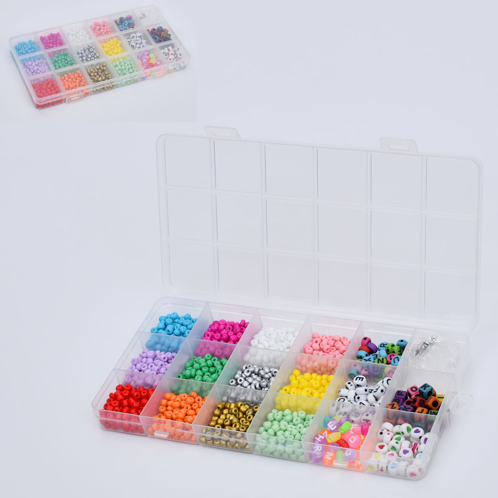 Бісер 1185-10 (100шт) намистини(літери англ), волосінь, у пеналі, 19-9,5-2см