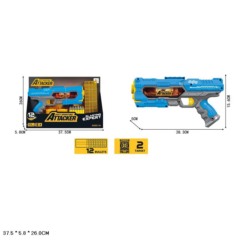 Бластер арт. JLX8621 (48шт/2) стріляє поролоновими знарядами, 12знарядів планш. 37,5*5,8*26см