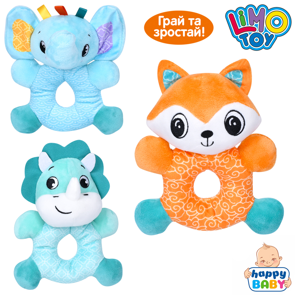Брязкальце м'яке HB 0059 ABC (75шт) 16см, плюш, 3 види (лисичка, динозавр, слон), у пакеті, 14-16-7с