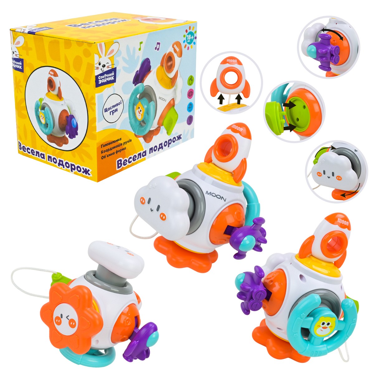 Брязкальце тактильне арт. PL-724-94, Сонячний зайчик", тактильна 6в1,рухомі частини, р-р13*12*14,5"