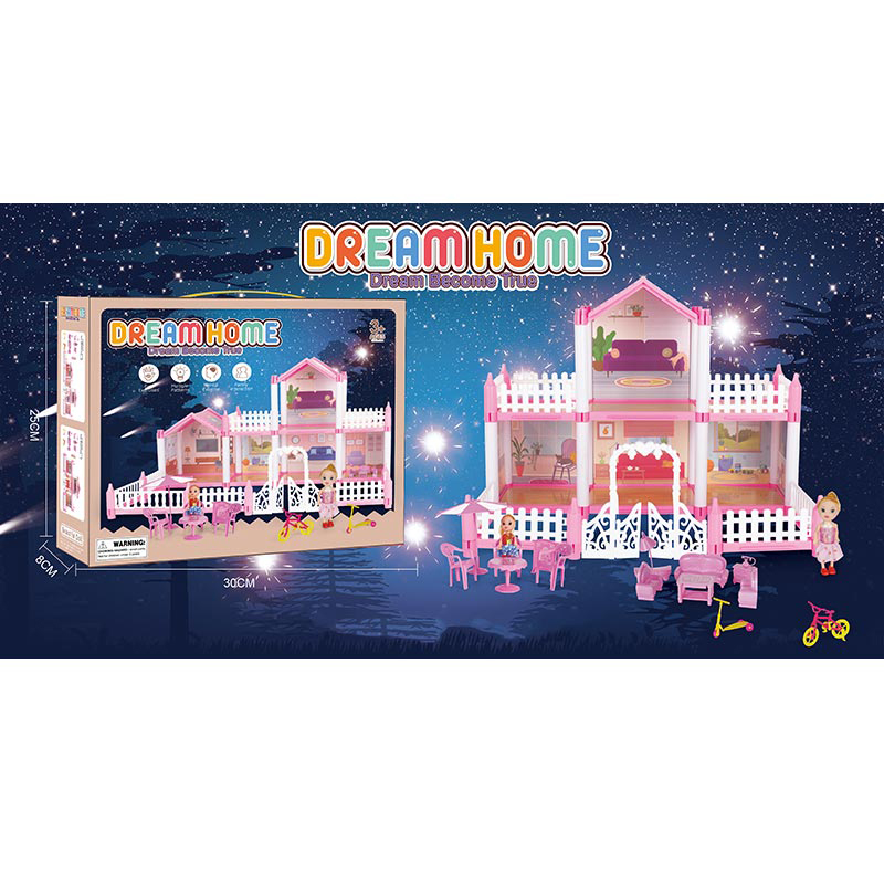 Будиночок SH99-4 (36шт) 2 поверхи, світло, меблі, лялька 2шт 10см, 111дет, бат(табл), в кор-ці, 30-2