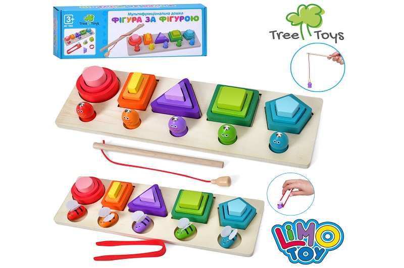 Дерев'яна іграшка Геометрика MD 1983 (40шт) 15фігур, 2 види (риболовля-магнитна/1 вудка/рибки, Діст