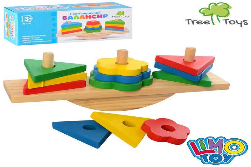 Дерев'яна іграшка Геометрика MD 2317 (50шт) Балансир, фігури 12 шт., кор., 21-9-6 см.