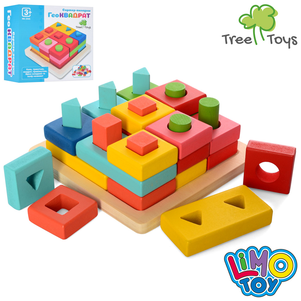 Дерев'яна іграшка Геометрика MD 2345 (24шт) сортер-вкладиш, геом. фігури, кор., 16-16-7 см.