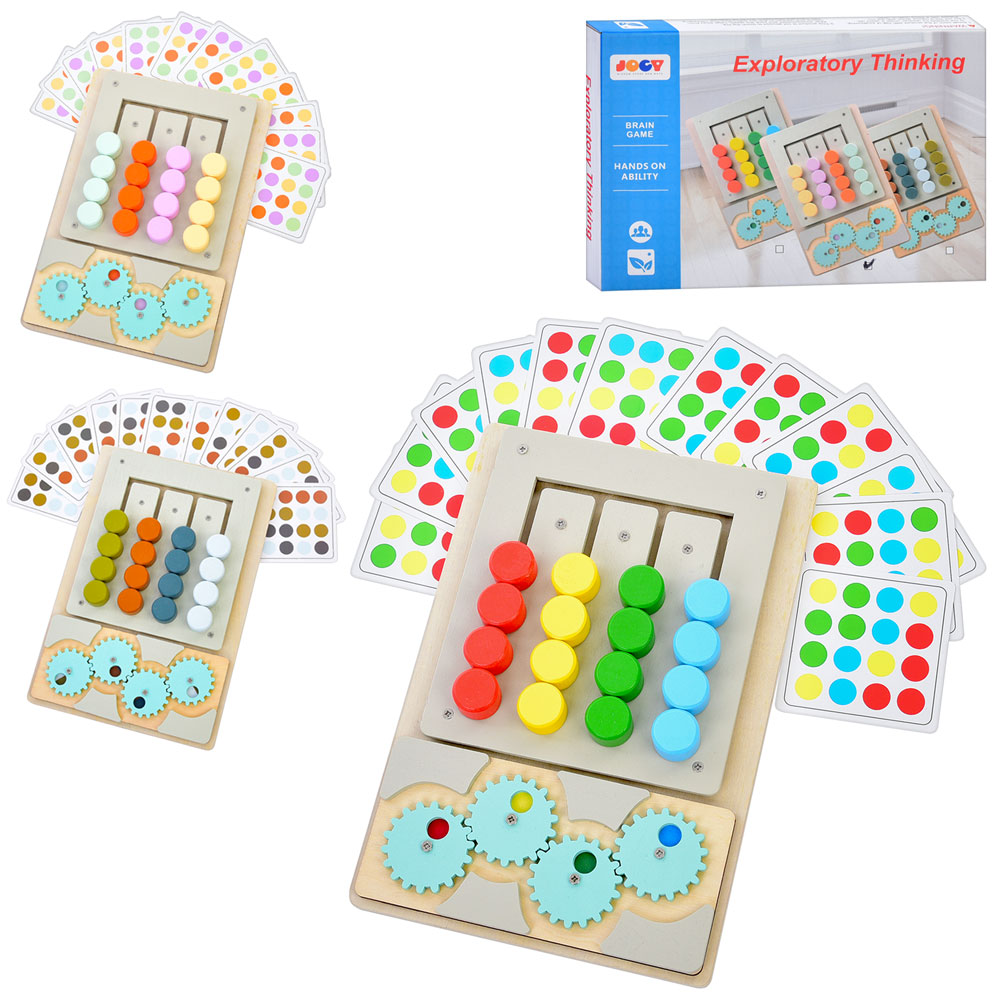 Дерев'яна іграшка MD 0836 (21шт) логічна, навчальна, ігрове поле 26-18см, картки, рухливі фішки, шес