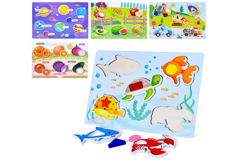 Дерев'яна іграшка Рамка-вкладиш MD 1989 (22шт) пазли, мікс видів, у пакеті, 30-22,5-1,5см