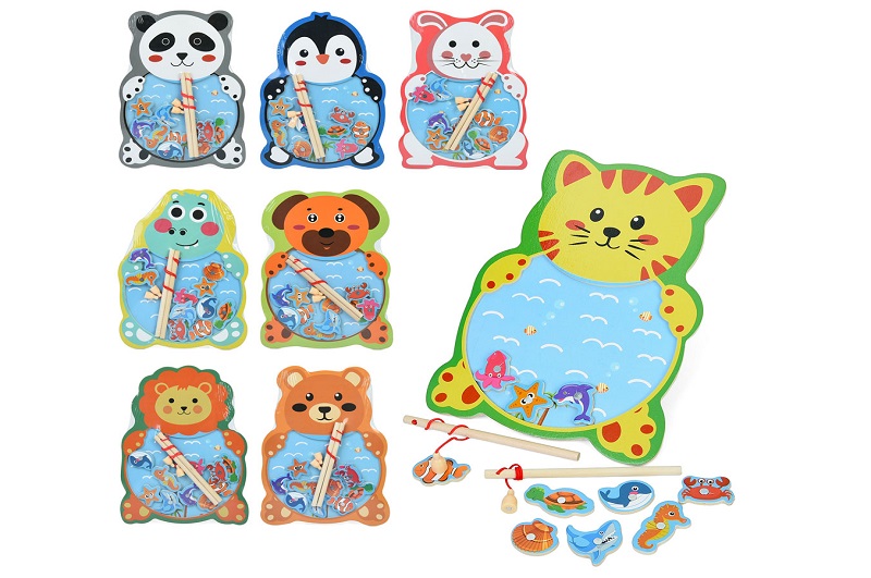 Дерев'яна іграшка Риболовля MD 1374 (60шт) магнитна, 2 вудки, морські мешканці 10шт, 8 видів, у паке