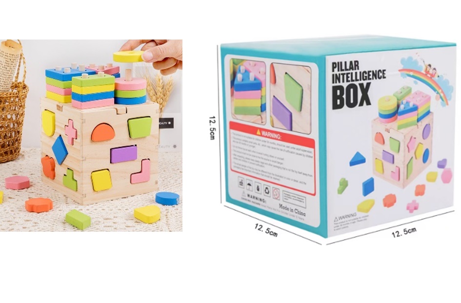 Дерев'яна іграшка арт. C15047 (48шт) куб-сортер у коробці 12,5*12,5*12,5см