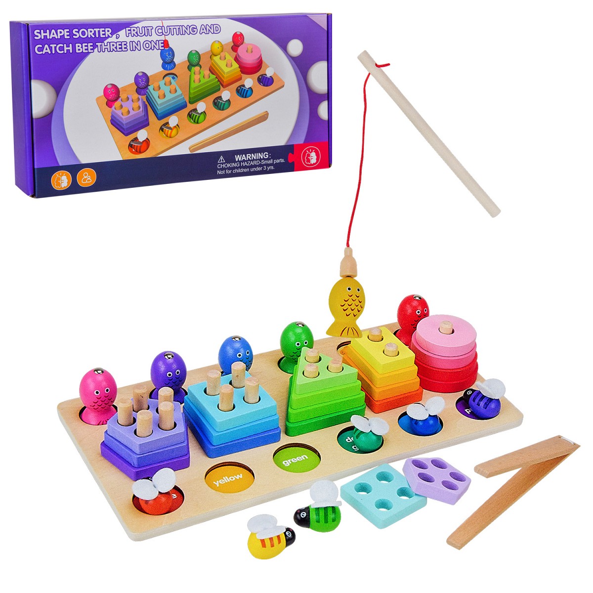 Дерев'яна іграшка арт. WD13021 (27шт) 3в1 пірамідки, риболовля, сортер у коробці 32,5*16*6 см