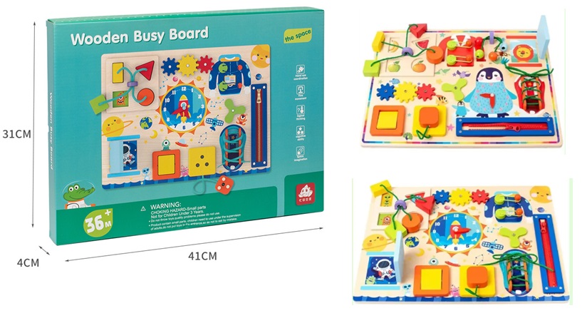 Дерев'яна іграшка арт. WD15407 (15шт) бізіборд у коробці 30*40*4см
