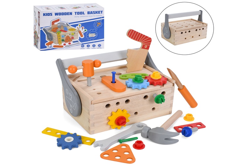 Дерев'яна іграшка конструктор MD 0749 (18шт) на шурупах, набір інструментів, шестерні, болти, ящик,