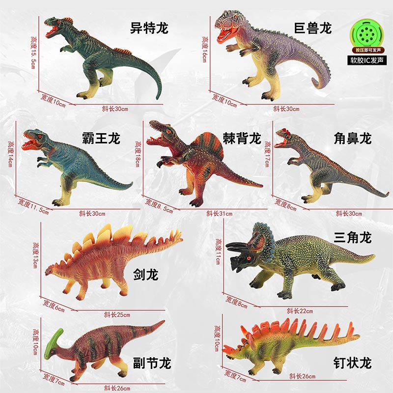 Динозавр арт. 678 (144шт) 9 види мікс, гумова з силіконовим наповнювачем, звук,33*11*14см