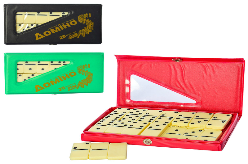 Доміно M 0002 (100шт) 3 кольори, у пеналі на кнопці, 5,7-18,5-38,3 см