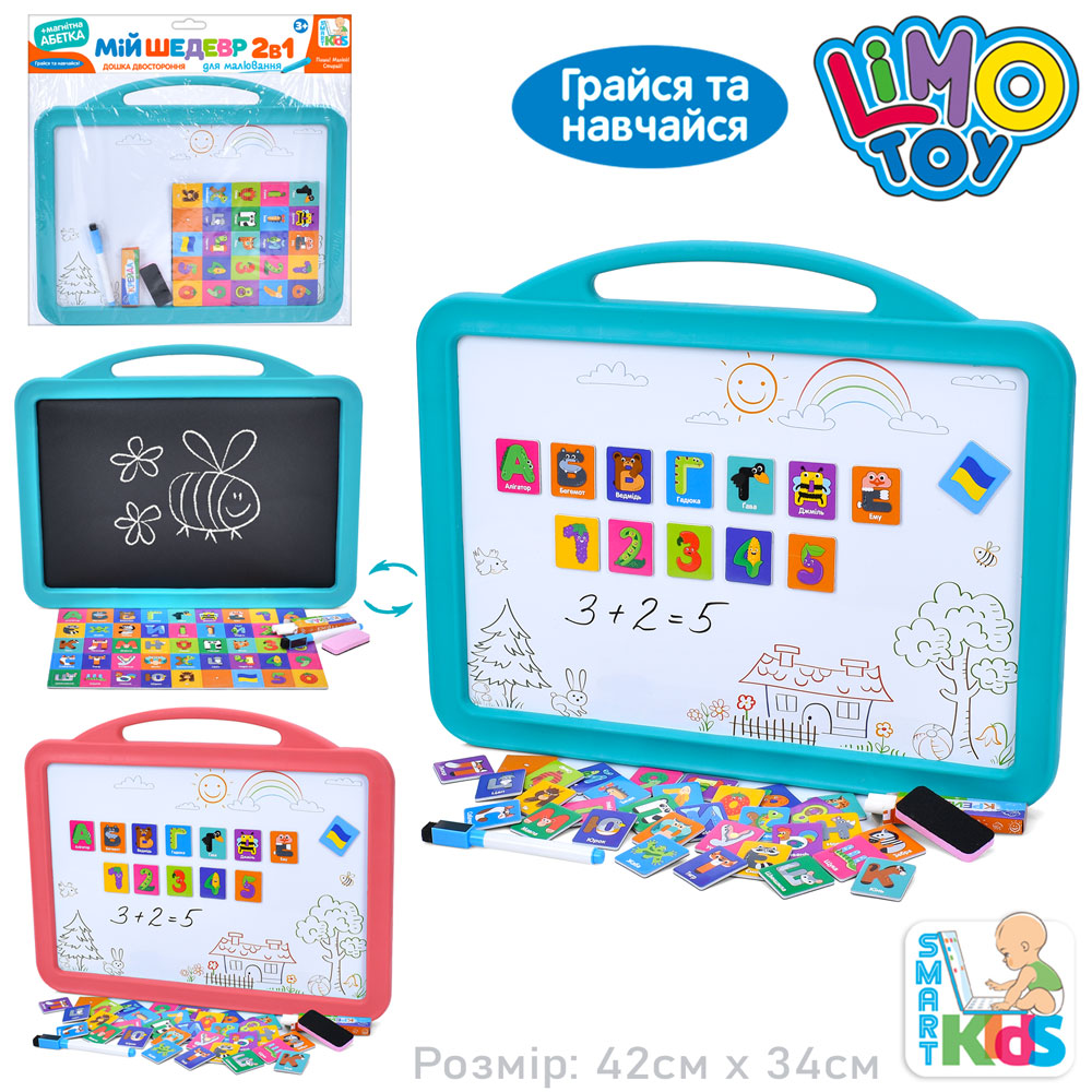 Досточка SK 0057 (60шт) 42х34х2см, двостороння (магнітна, для малюв. крейдою), абетка (УКР),маркер