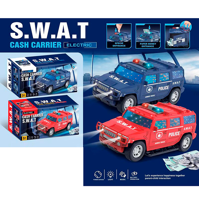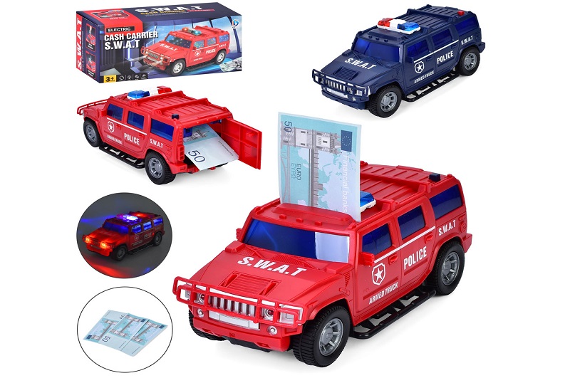 Джип 8899-156 (24шт) поліція, 26,5см, 2в1(скарбничка), затягує купюри, отвір для монет, музика, звук