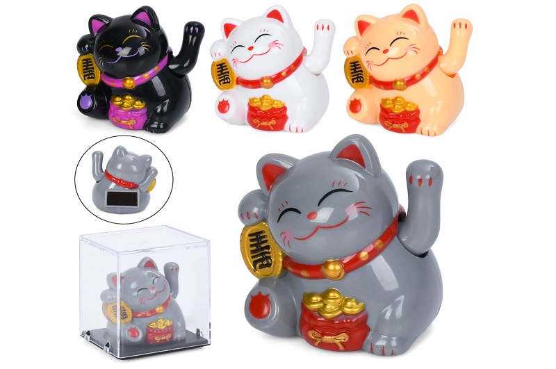 Фігурки для гри 518-7 (48шт) Манекі-неко, Кіт щастя, Кіт удачі, рухлива лапка, сонячна батарея, 4 ко