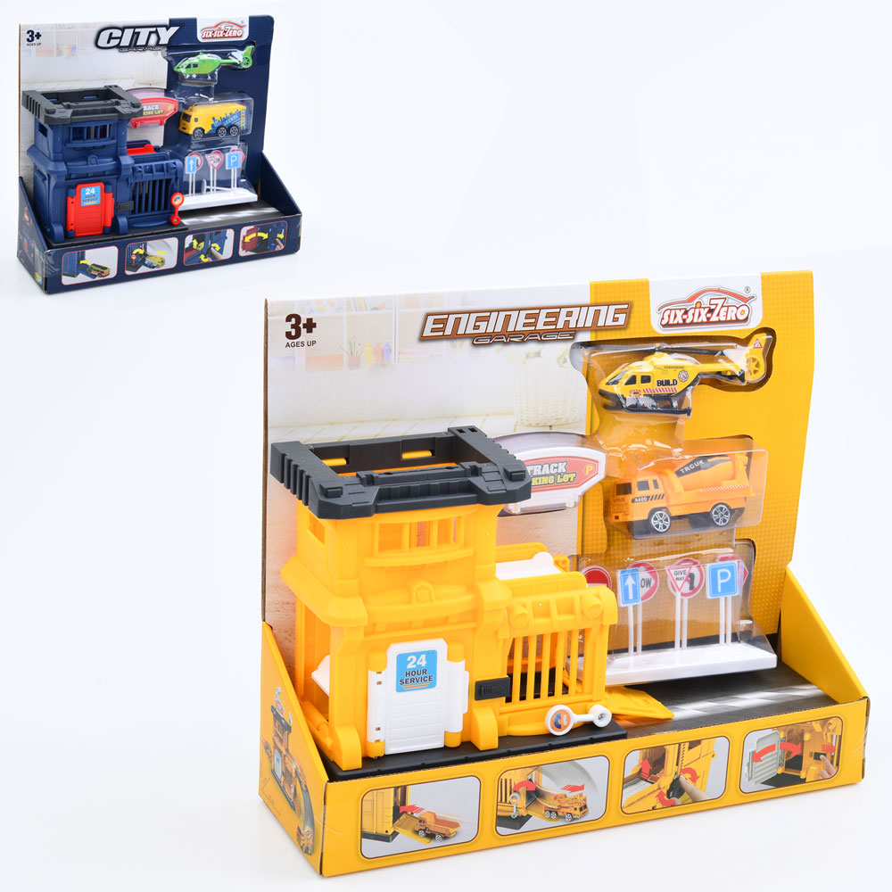 Гараж 660-S37-38 (24шт) будівля 15-14,5-7см, рухливі деталі, транспорт(машинка 7см,вертоліт10см)-мет