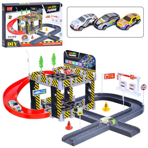 Гараж A333-239A (18шт) 61-52-в28см, 2 поверхи, машинки 3шт 7см, дорожні знаки, в кор-ці, 43-30,5-7,5