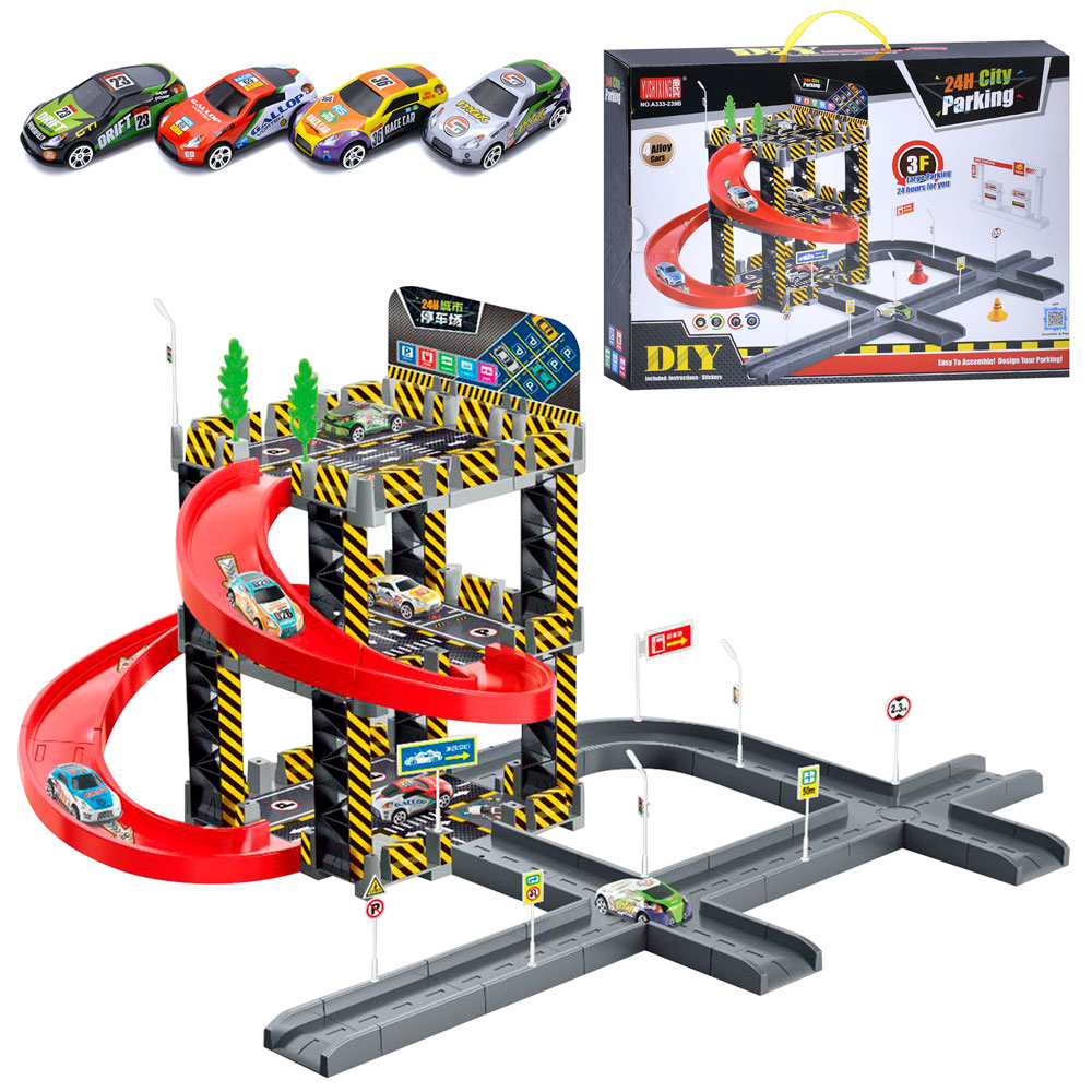 Гараж A333-239B (8шт) 62-70-в41см, 3 поверхи, машинки 4шт 7см, дорожні знаки, в кор-ці, 48-36-10см