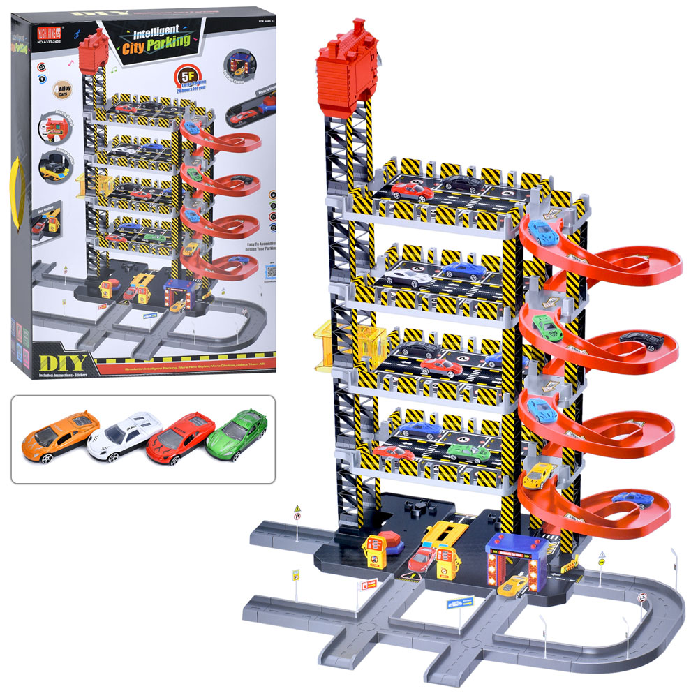 Гараж A333-240E (6шт) 95-65-в85см, 5 поверхів, лифт-звук, світло, машинки 4шт 7см, запуск машинок, н
