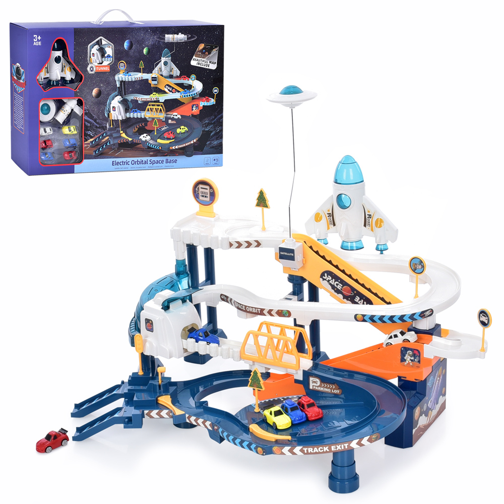 Гараж XZ-1066 (6шт)2 поверхи,космосмічна станція,машинки 6шт(4,5см),музика,на бат-ці, в кор-ці 60-37