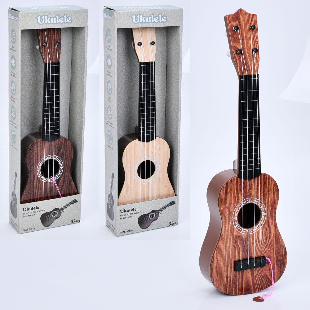 Гітара 620-5-6-7 (36шт) 55см, 4 струни, медіатор, 3 кольори, в кор-ці, 17,5-55-7,5см
