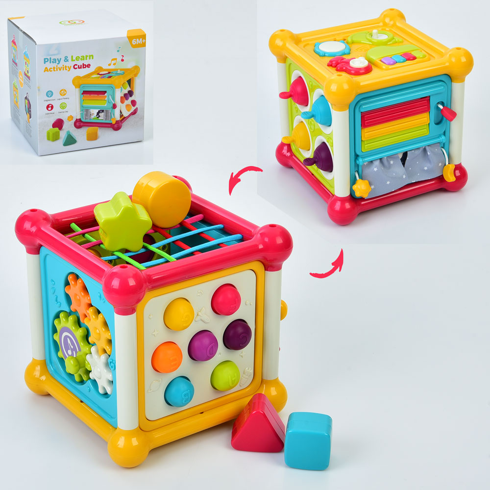 Гра 3860 (18шт) куб, рухливі деталі, фігури-брязкальця, м'які кнопки/Pop it, музика, на бат-ці, в ко
