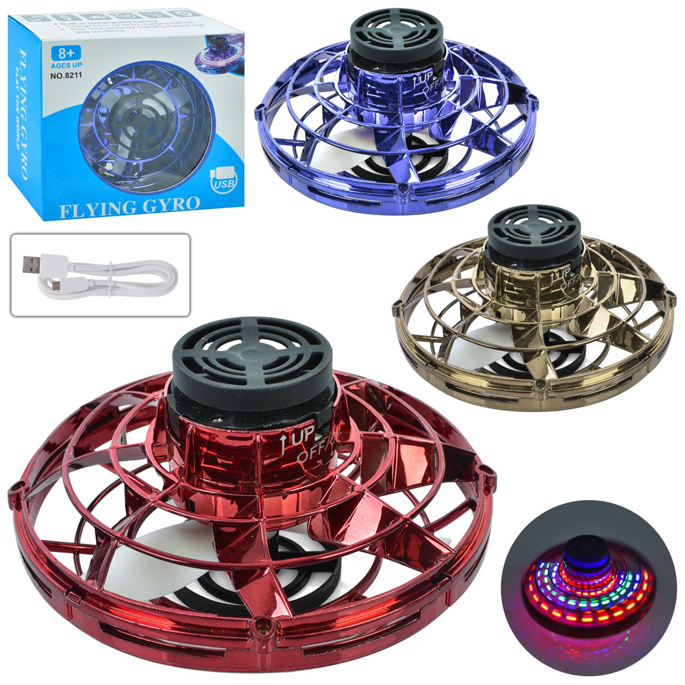 Гра 8211 (24шт) 8,5см, акум, світло, літає, дзига, USB зарядка,3кольори, в кор-ці 11-10-5см