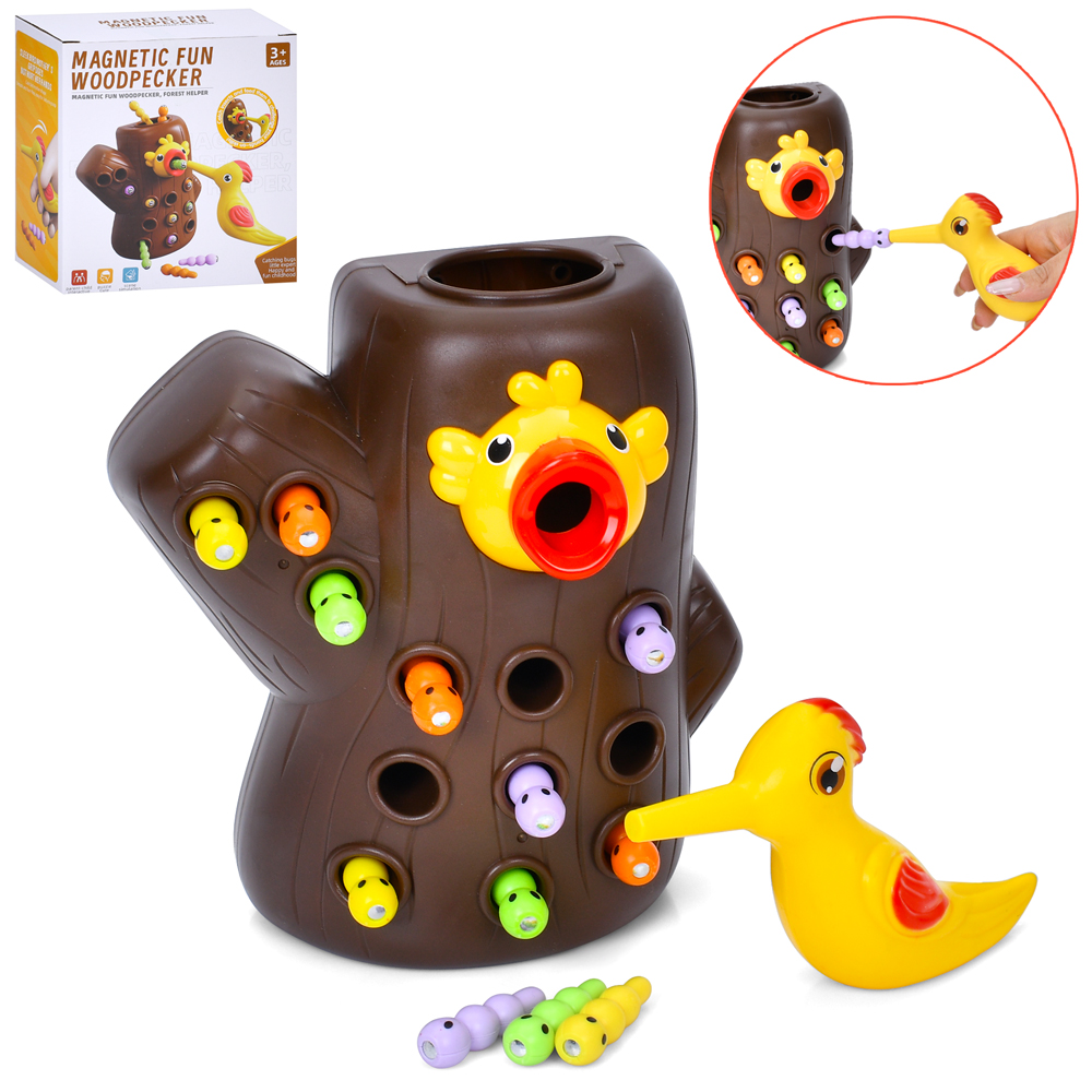 Гра ME-143 (48шт) Нагодуй пташку, магнитна, пташка/дятел, гусениці, в кор-ці, 18-19-10,5см