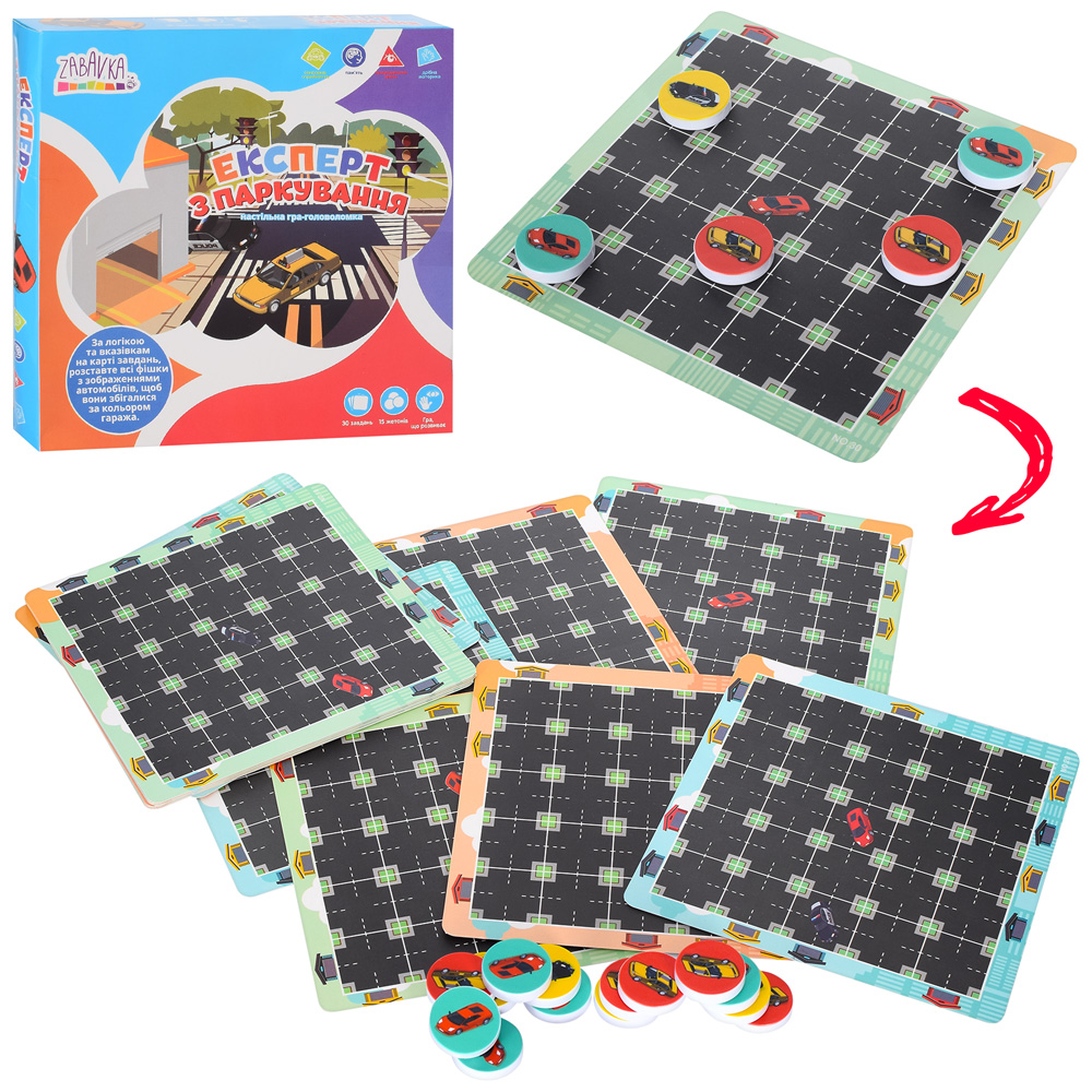 Гра UKB-B0033 (54шт) Експерт з паркування, картки15шт, жетони, в кор-ці, 17,5-17,5-2,5см