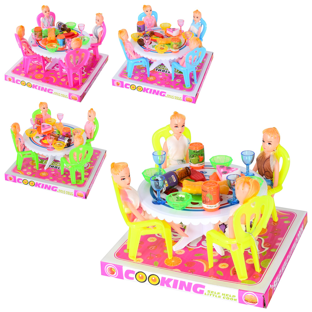 Їдальня 66-2R (60шт) стіл, стільці, лялька 4 шт., посуд, мікс кольорів, бліст., 18,5-13-18 см.