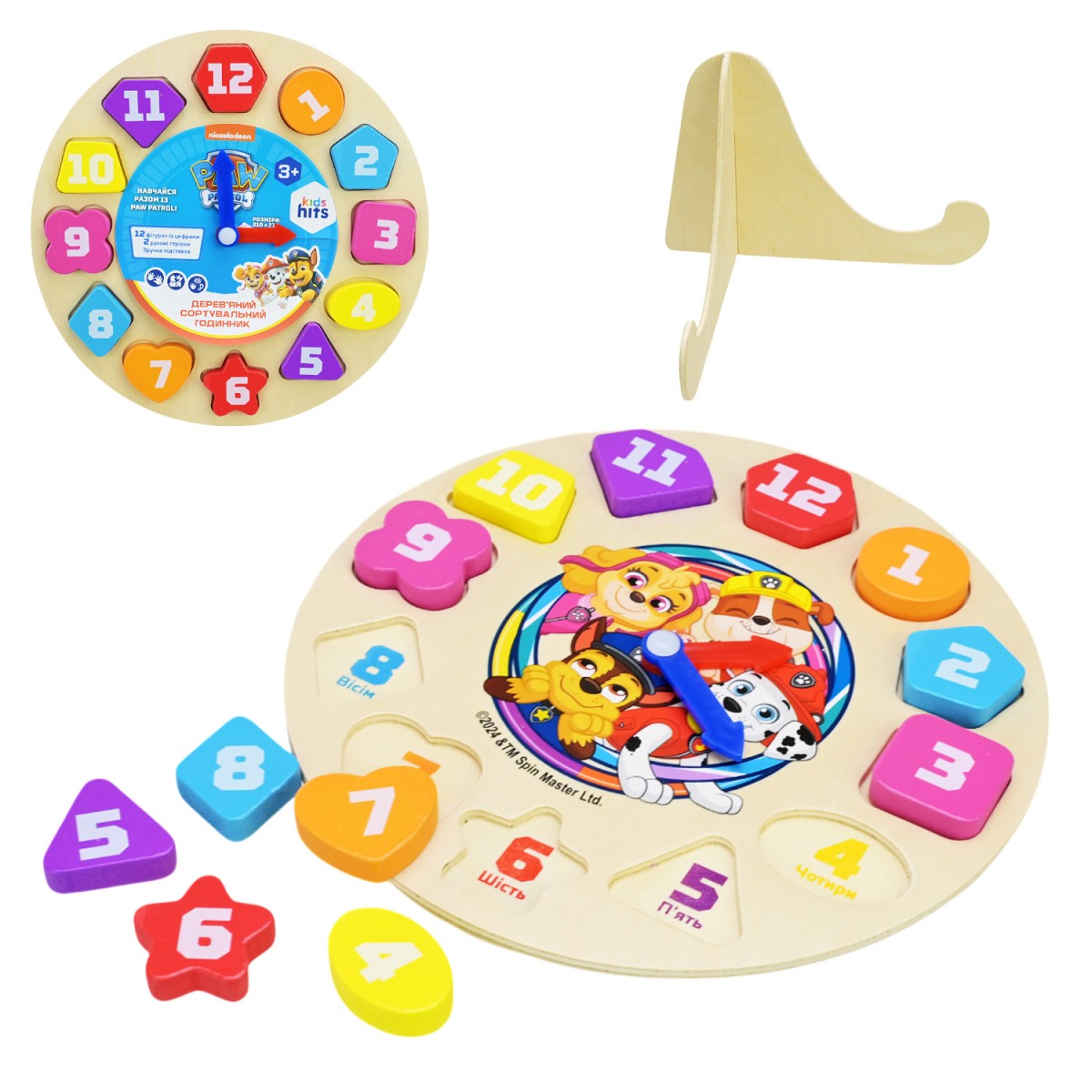 Іграшка дерев'яна KidsHits Paw Patrol арт. KH20/047 годинник-сортер у плівці 21*21*1 см