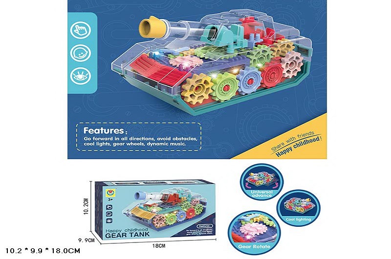 Іграшка муз.танк 2265A (72шт/2)батар.,прозорий корпус, кольорові внутрішні деталі, світло,звук,у кор