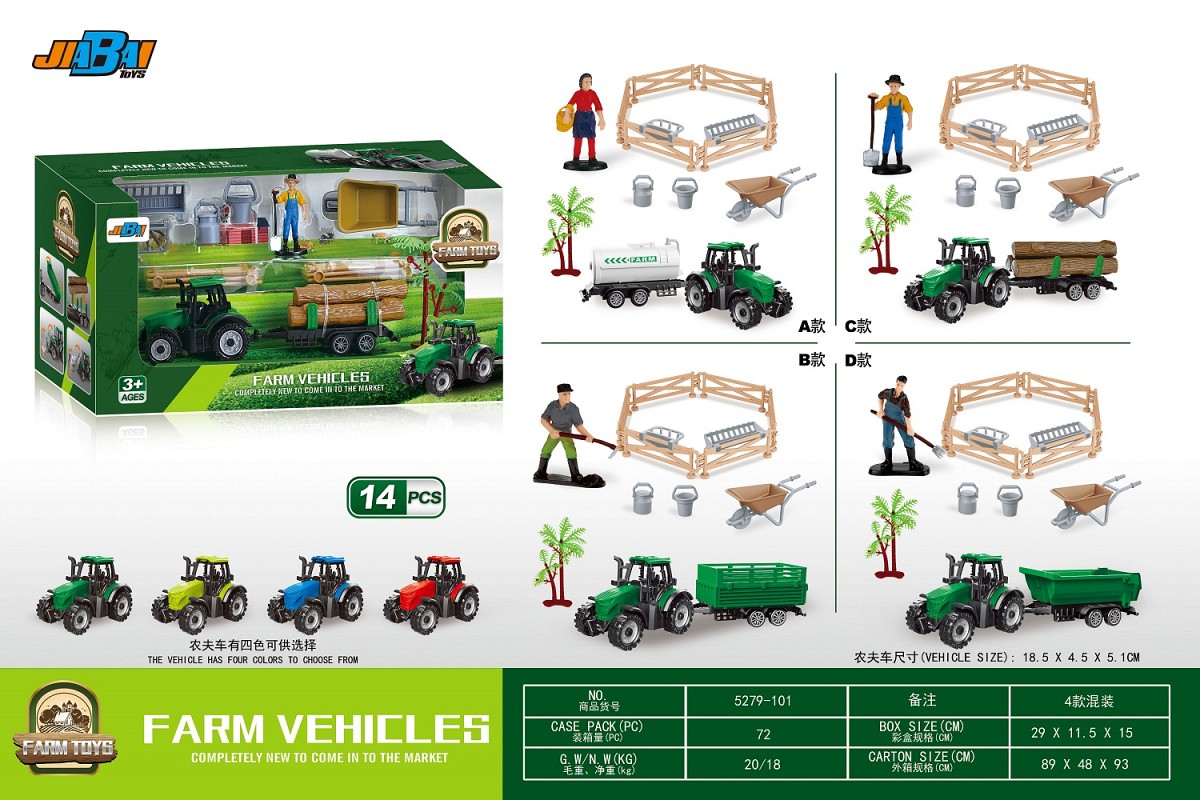 Іграшка трактор з причепом інерції. арт. 5279-101ABCD 3 кольори, фігурки людей, у коробці 29 * 11,5