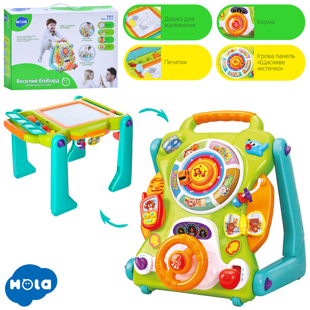 Ігровий центр 2107 (4шт) каталка-ходунки, 35-36-41cм (анг) дошка-малюв.муз.світло.бат.кор.47-33-15см
