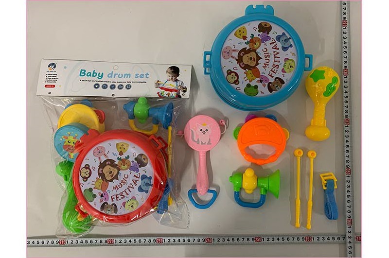 Інструменти муз. арт. A881 (48шт/2) барабан, бубон, стукалка, труба, пакет 32*33*11см