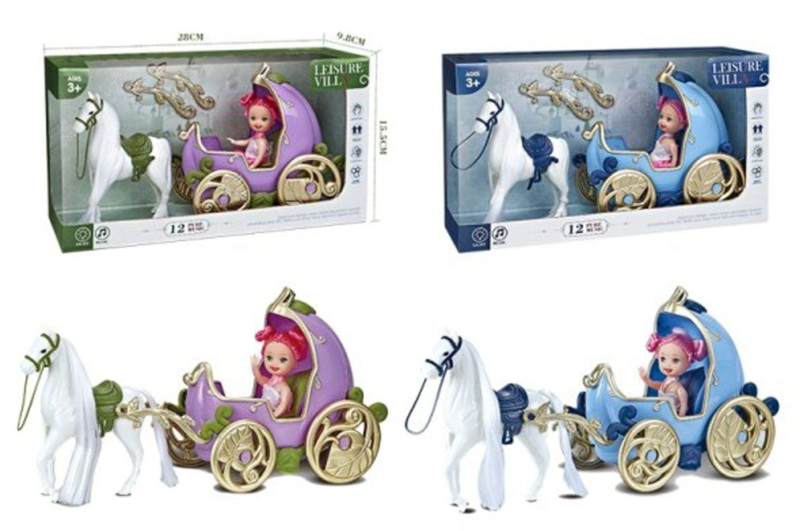 Карета з коником і лялькою, озвучена, зі світлом, 2види, в коробці 686-849 р.28*9,5*15,5см