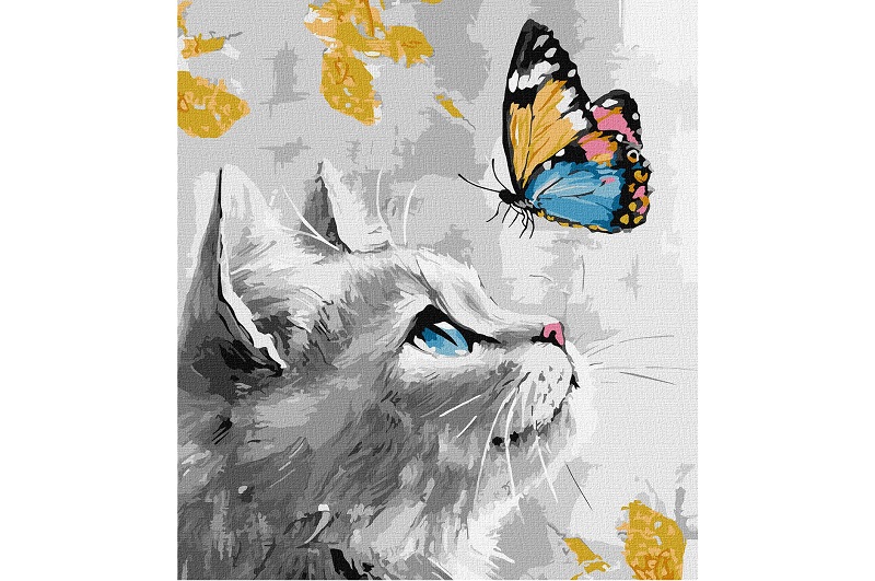 Картина по номерах Мрійливе кошеня з фарбами металiк extra" 40х50см KHO6680"