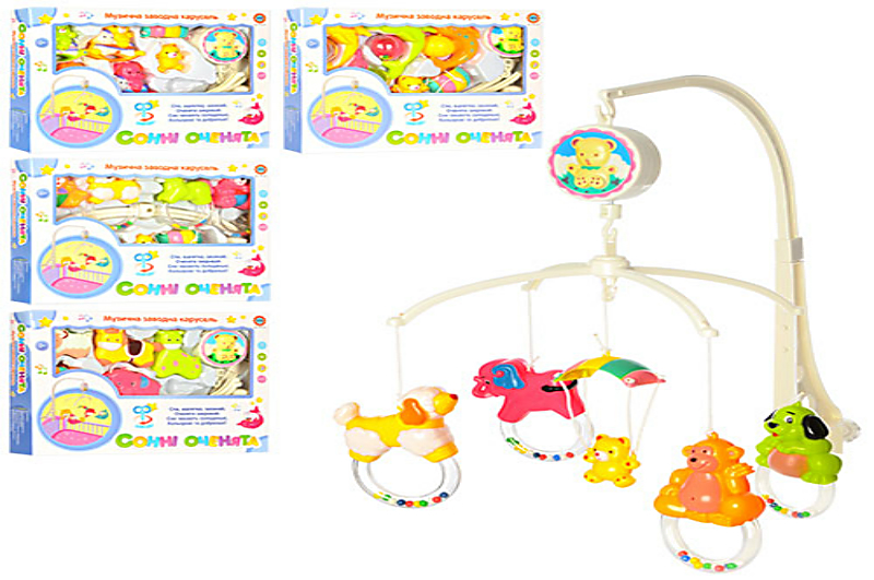 Карусель M 1177 U/R (36шт) на ліжечко, 2 види, муз, в кор-ці, 32-25-5см
