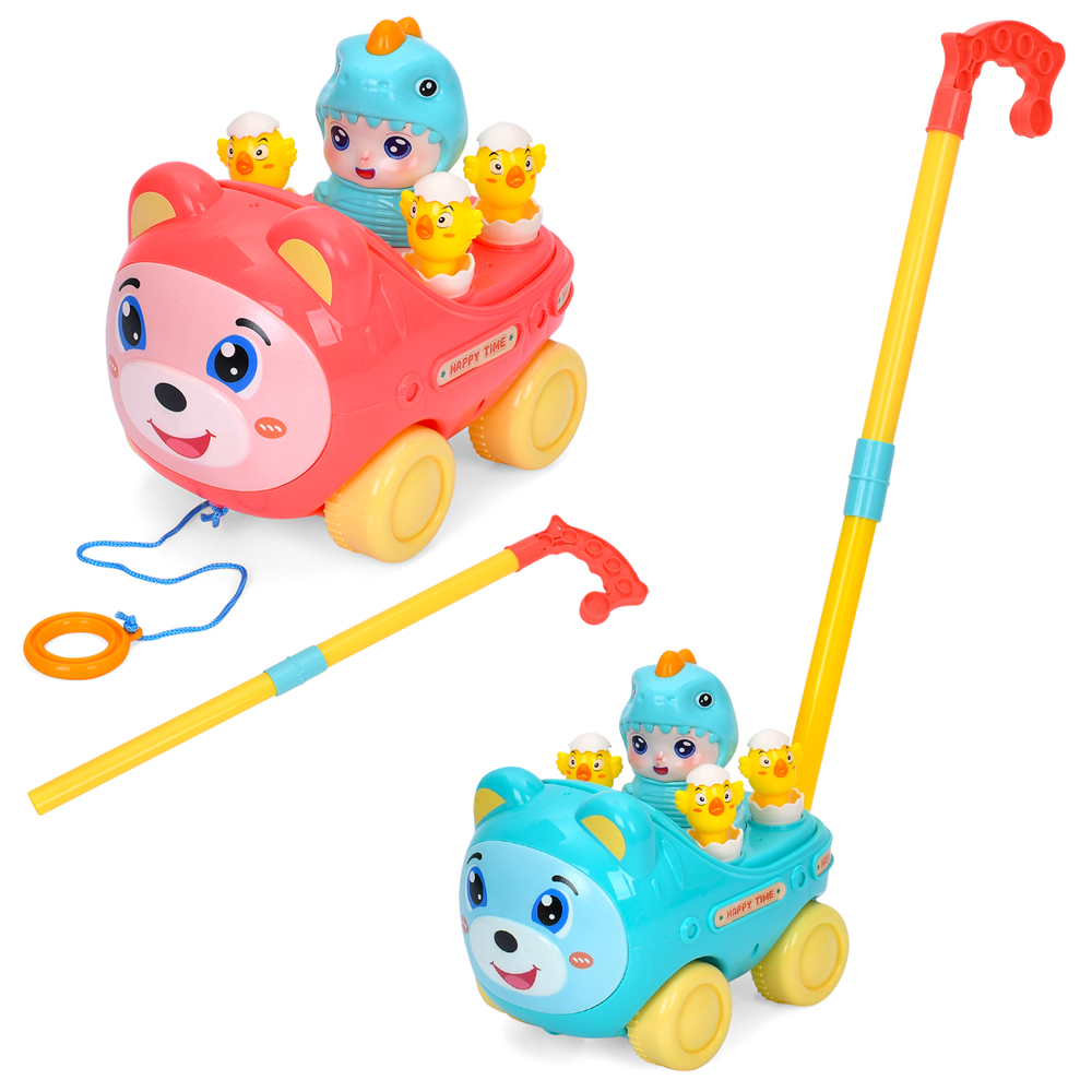Каталка 8517B (48шт) на палці 41см/на шнурі, тварина-машинка 18см, фігурка, рухливи реталі, звук, 2