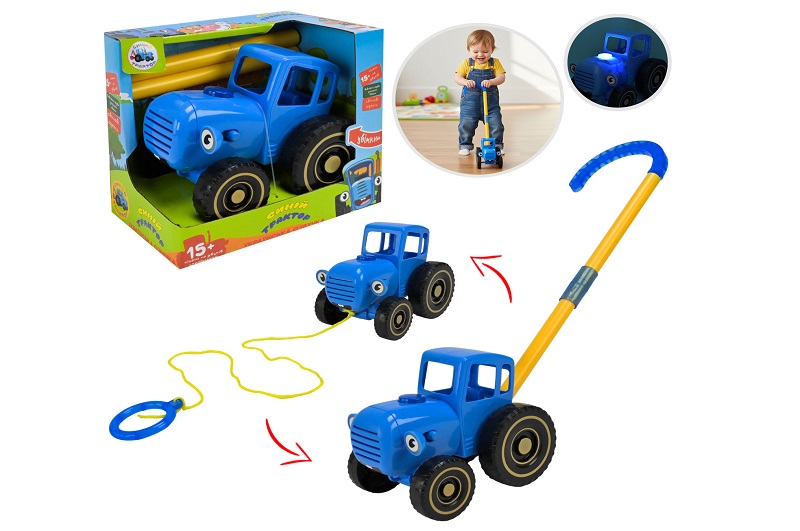 Каталка W6802-1A (60шт) на палці/на шнурі, трактор 14см, музика (УКР), світло, на бат(табл), в кор-ц