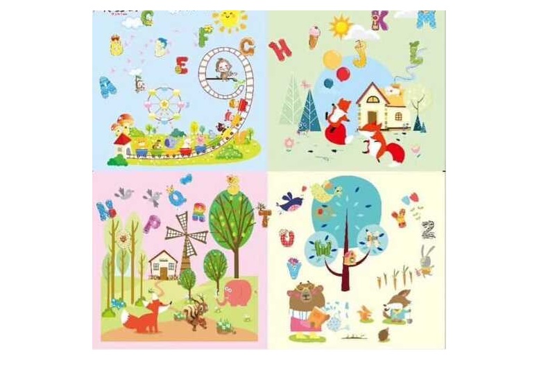 Килимок-пазл M 20347 (15) 4 м`які елементи, матеріал: EVA, розмір пазла:61x61х1 см, в плівці