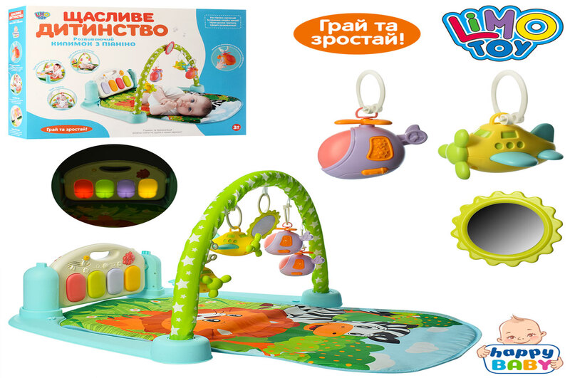Килимок для немовляти M 5471 (9шт) 72-44см, дуга, підвіски5шт, піаніно-муз, св, на бат, в кор-ці