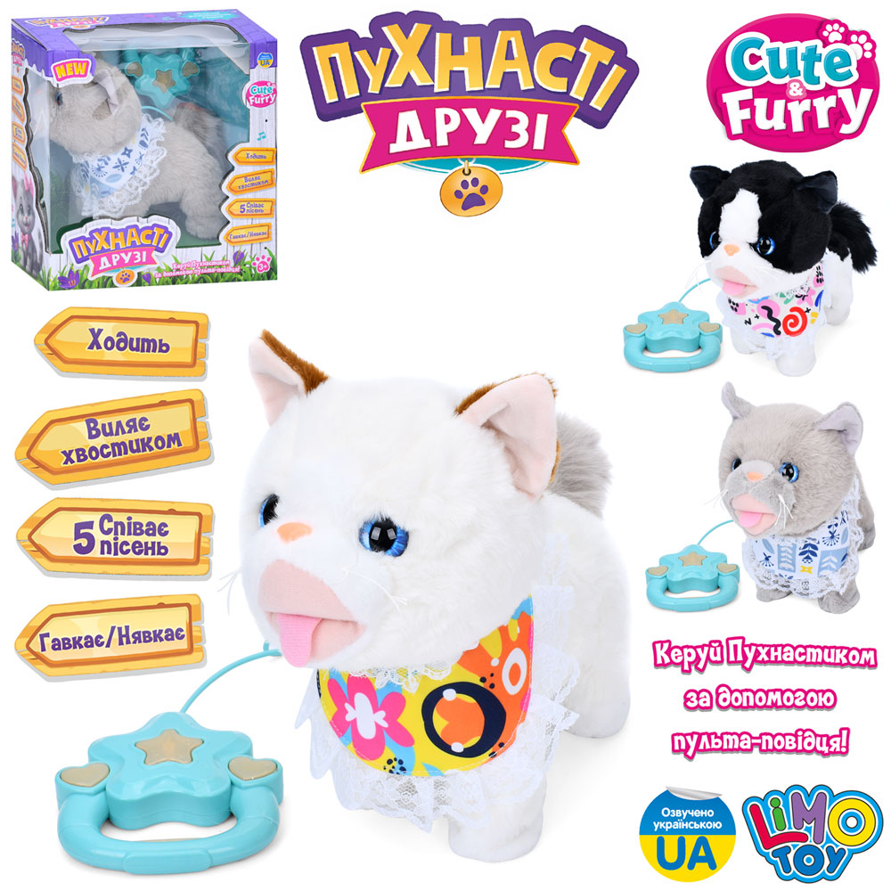 Кіт M 5842 I UA (16шт) 25см, плюш, звук(укр), музика, ходить, рухає хвостом, пульт-повідець, 3 види,
