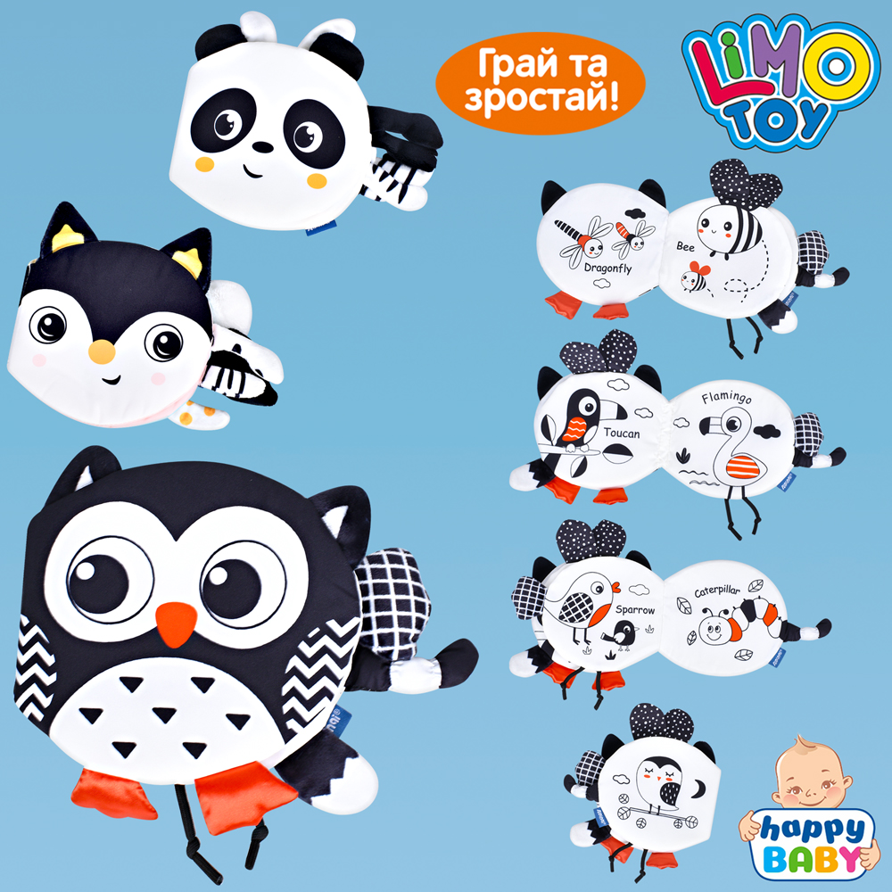 Книжка HB 0063 ABC (60шт) 16-15-4см, м'яка, шуршить, назви на англ., 3 види (сова, панда, лисичка),