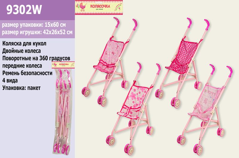 Коляска 9302W fhn/ 886AB(12шт) для лял, мет, тростина, подв.кол, поворот, 55-49-26см,вис.до руч 53