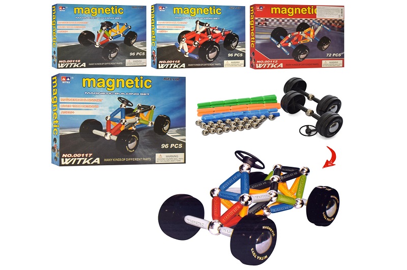 Конструктор 00112-15-16-17 (24шт) магнітний, машина, від 72 дет., 4 види, в кор-ці, 28,5-21-4,5см